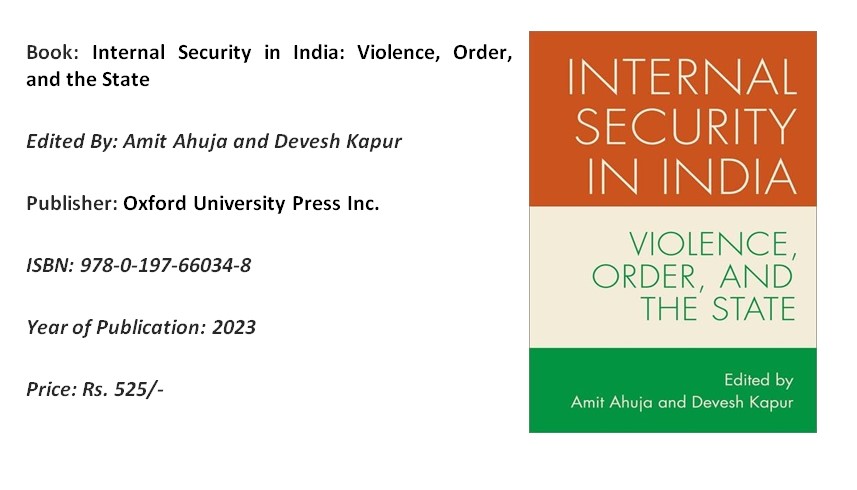 Internal Security in India: Violence, Order, and the State, edited by Amit Ahuja and Devesh Kapur, is a compilation of 15 essays on India’s internal security management by well-known writers, which were originally presented at a virtual workshop in September 2020.
