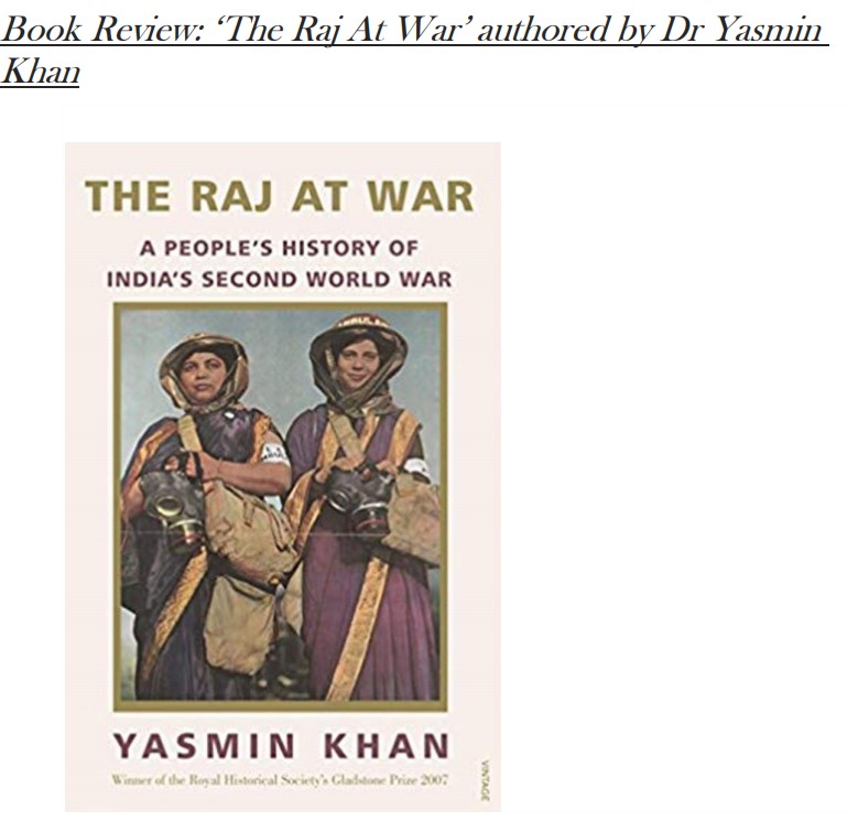 ‗The Raj at War‘ provides an alternate history of the Second World War. Dr. Yasmin Khan provides authentic details about the war by including personal accounts of people. Dr. Khan‘s efforts in justifying India‘s participation also helps one understand the political and social conditions prevalent in India during the 1940s. The political classes in India, the people, the royalty, the government all were collectively involved in the war and their contribution facilitated the Allied victory.