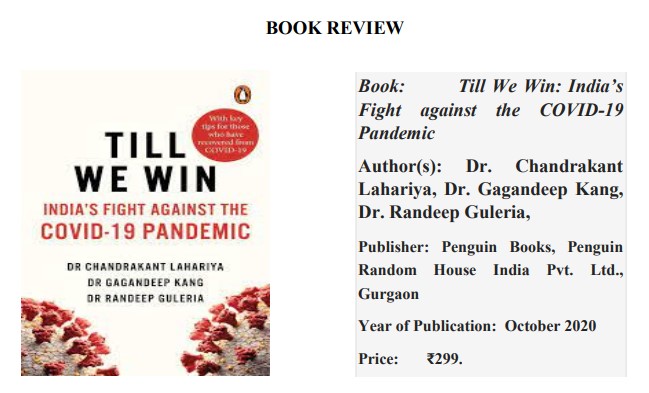 ‘Till We Win’ provides comprehensive analysis of India’s journey and response to COVID-19 pandemic and documents and deliberates how India, fought and continues to fight against novel coronavirus, SARS- CoV-2. This book is as much for general readers as it is for health policy makers. The book was brainchild of Dr. Chandrakant Lahariya, public policy and health systems expert, and has benefitted from involvement of two key personnel in India’s responses — Dr. Gagandeep Kang, renowned vaccine researcher and virologist, and Dr. Randeep Guleria, director of All India Institute of Medical Sciences, New Delhi. It is a book by three medical experts at forefront of India’s fight against Covid-19 who say that what prompted them to write this book was the misinformation that surrounded the pandemic and the need to provide key information to citizens about how the pandemic emerged and grew – what was done, what continues to be done, and what future may hold for India. They also aimed to capitalise on increased interest in health system, as India readies for ‘new normal’. All three authors are ‘insider outsiders’. Even while being part of government’s pandemic response, they have not shied away from expressing divergent opinions, and nudging policymakers towards course-correction.