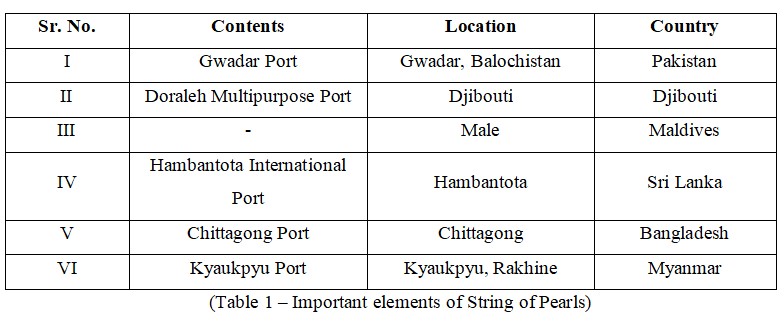 The term ‘String of Pearls’ was coined by Booz Allen in 2005. In his report titled ‘Energy Futures in Asia’, he projected China’s expansion of its naval power in the Indian Ocean Region. The String of Pearls strategy emphasizes China’s economic, military, diplomatic and political stature in the region. (Ashraf, 2017, 169) Explicitly, this project reflects China’s geopolitical ambitions and diplomacy. However, its impact on India is implicit and intended. Every location or ‘pearl’ in this string has been strategically curated and cultured by China to serve these dual objectives. This paper will discuss each of these pearls, analysing their importance from a trade and geopolitical perspective alike.