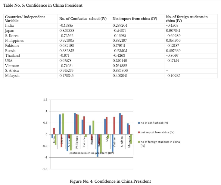 The incumbent Chinese President is a unique person and the development in last few years in China, the Xi Jinping has reach to top notch posts which includes General Secretary of CCP, Chairman of the Central Military Commission (CMC) and President of the People’s Republic of China (PRC). It is imperative how world views the position of President Xi-Jinping, who is currently, considered as Supreme Leader of China after legendary Chairman Mao Zedong. These dependent variables react to the independent variables which are listed as, number of Confucius school, net imports from China and number of foreign students in China. These independent variables are very important part of China’s overseas perception management framework.