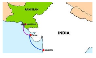 Operation Trident Begins:: The Distance between Okha and Karachi is about 500 Kms. To overcome the limitation of the range of missile boats it was decided that the corvettes will tow the missile boats. The squadron was to maintain complete radio silence till they reach close to Karachi. The Strike Group set sail. On 4th December, the strike group reached 250 nautical miles (460 km; 290 mi) (nmi) south off the coast of Karachi, and maintained its position during the day, outside the surveillance range of the Pakistan Air Force (PAF).