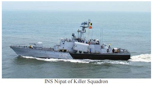 INS Nipat, INS Nirghat and INS Veer, Commanded by Commander Babru bhan Yadav embarked on INS Nipat. The 3 Boats were deployed at Okha in Gujarat.