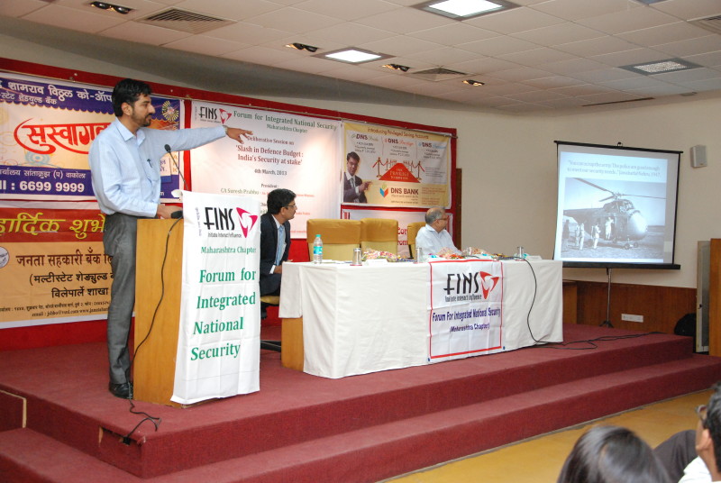 Unnithan was analyzing the Union Budget 2013, from a defence perspective, at a gathering organized by the Forum for Integrated National Security (FINS), here. “Slash in Defence Budget: India’s Security at Stake” was the theme of the analytical deliberations. The session was presided over by the well-known banker and former Union Minister Suresh Prabhu. AkhileshBhargav, the Chartered Accountant and financial analyst, moderated the deliberations at the meeting. Secretary-General of FINS, Bal Desai welcomed the gathering and the guests.