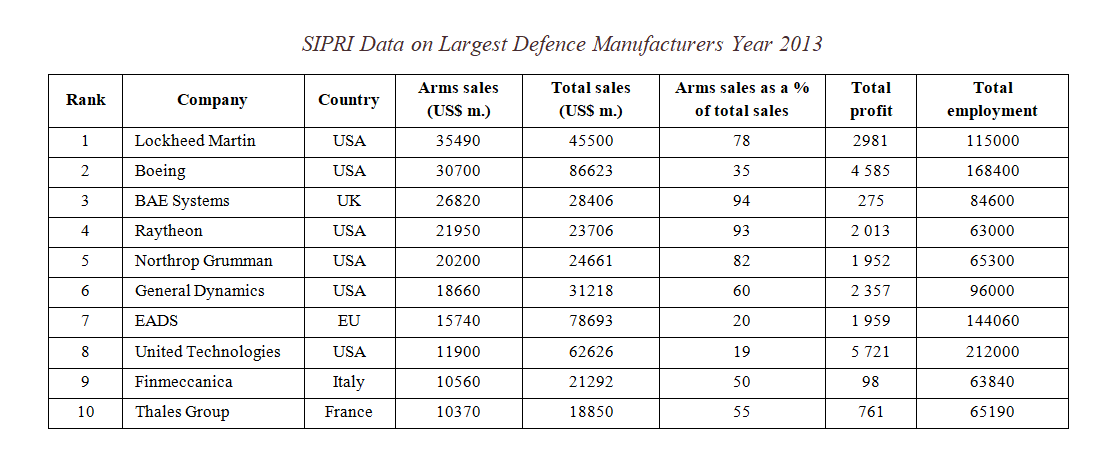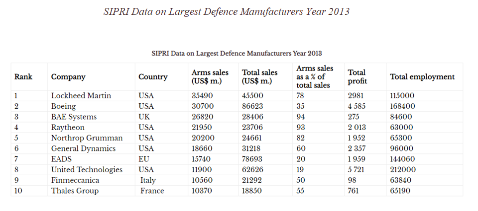 The strong defence eco-system has given America technological edge and military superiority. Among 10 Largest defence companies, 6 are American. These US companies produced employment for 7,19,700 people in high-end manufacturing.