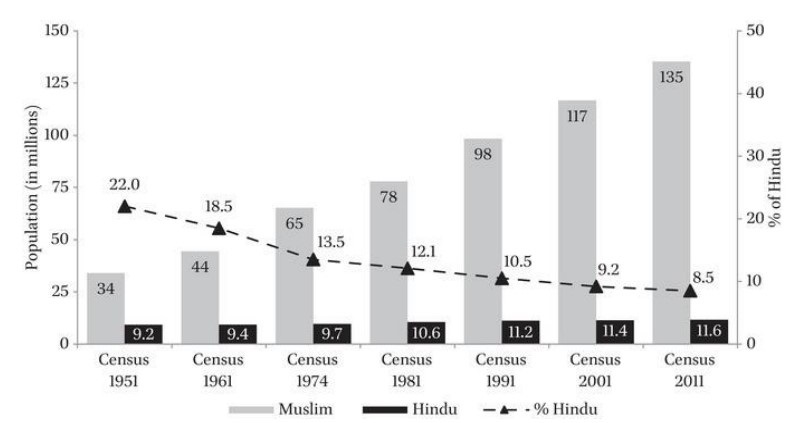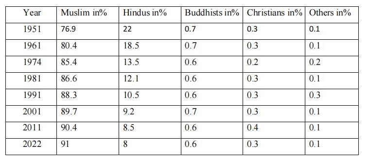 Population trends for major religious groups in Bangladesh (1951–2022)