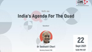 Dr Seshadri Chari will speak about India's Agenda for Quadrilateral Security Dialogue in the backdrop of the first in-person Quad Leaders Summit on September 24 in Washington DC.