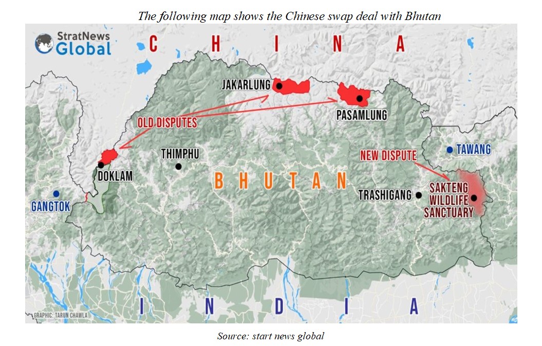 The treaty of 1890 settled the border between British India and imperial China but redrew the boundary between Tibet and Bhutan. Bhutan shares 470-kilometer-long border with China and according to some reports over 25 per cent remained in dispute for decades. China has proposed Bhutan cede 269 square kilometers area in west of Bhutan including Darmana, Shakhatoe and Sinchuling for which it had offered a swap deal to give 495square kilometer area of Pasamlung and Jakarlung in northern Bhutan. [5] The talks between the two sides began in 1984 and from the seventh round in 1990 China pushed a “package proposal”, during the 10th and 11throunds of talk there was intensive diplomacy from both India and China. Bhutan backed off from the Chinese proposal in November 1996, many believed that India played a crucial role to convince Bhutan.